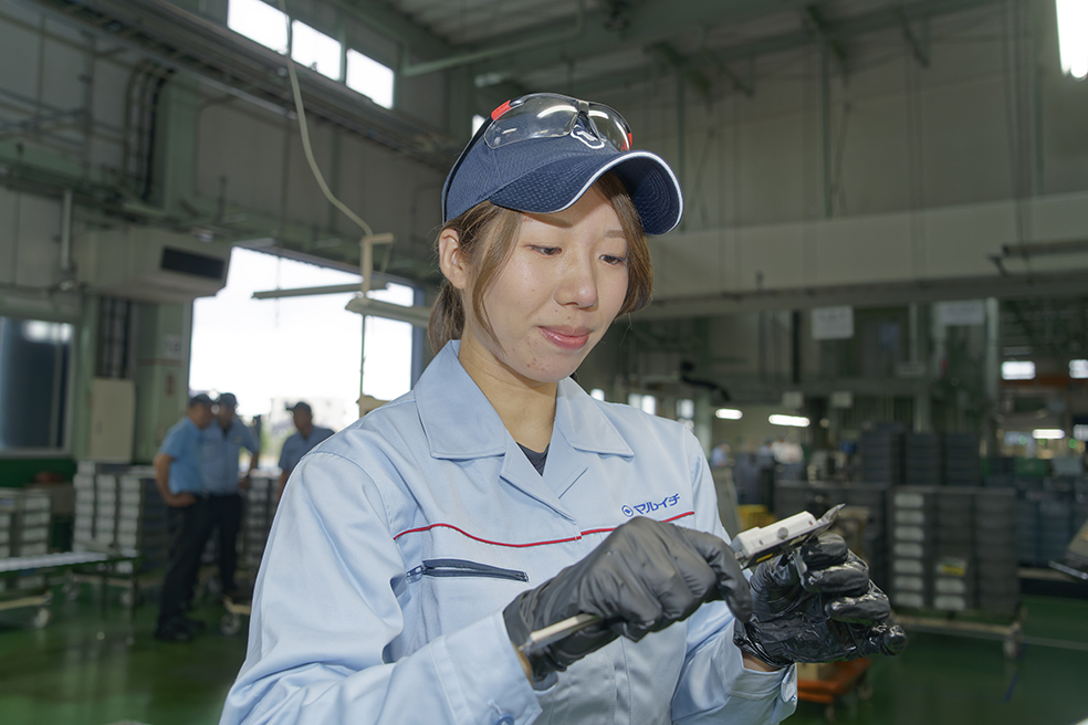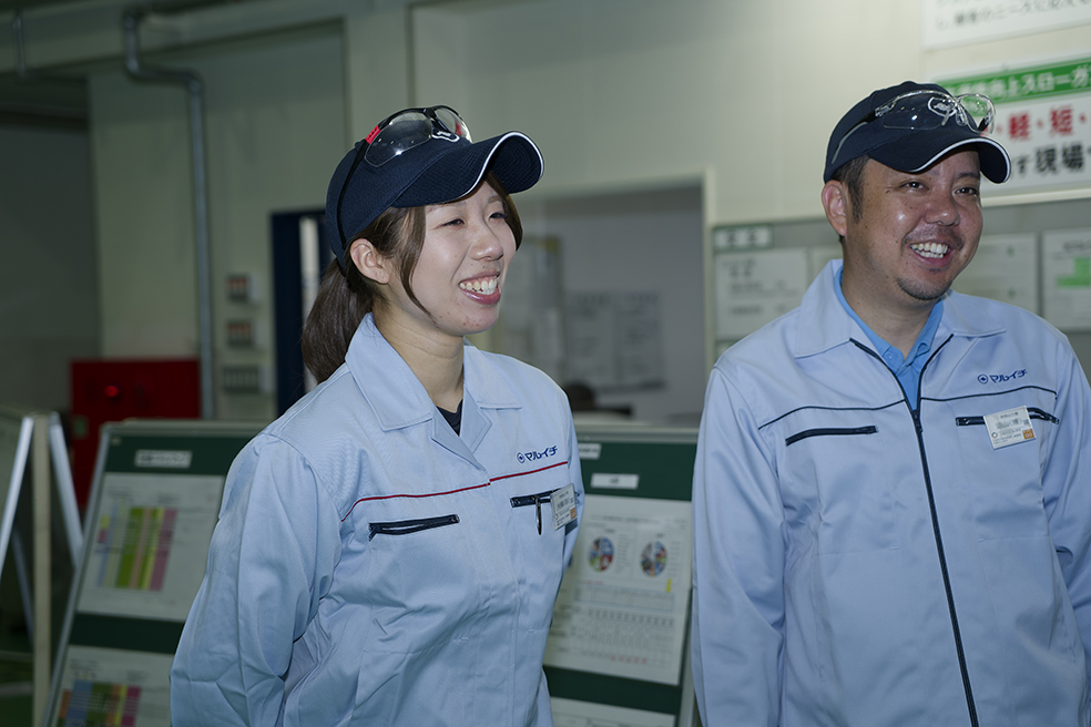 - 私が想像していた「製造業の工場」と比べて、とてもキレイで広々しているところが想像と違っていて驚きました。一度見学に来てみれば分かってもらえると思います(笑)。